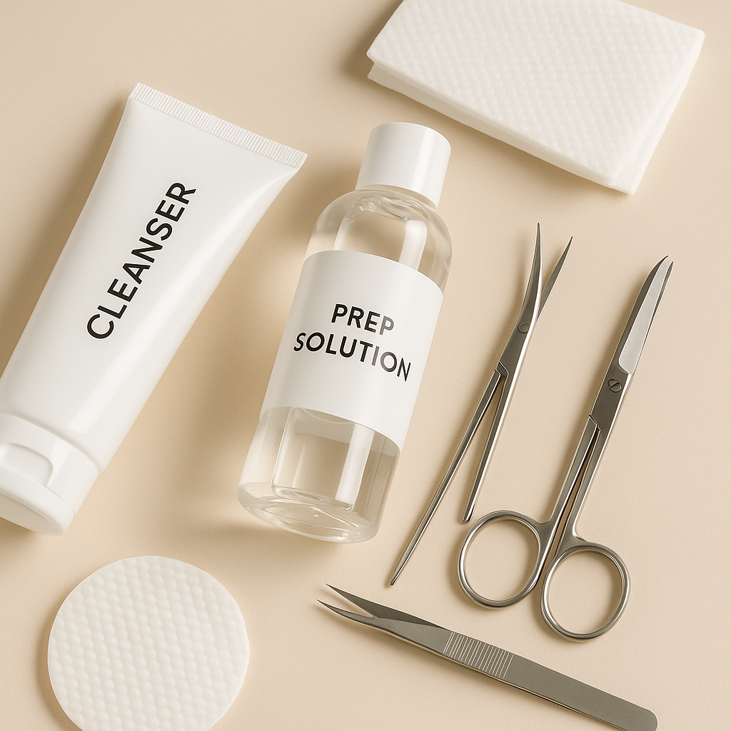 From gentle cleansers and prep solutions to tweezers, applicators, and esthetic accessories — we’ve got you covered.